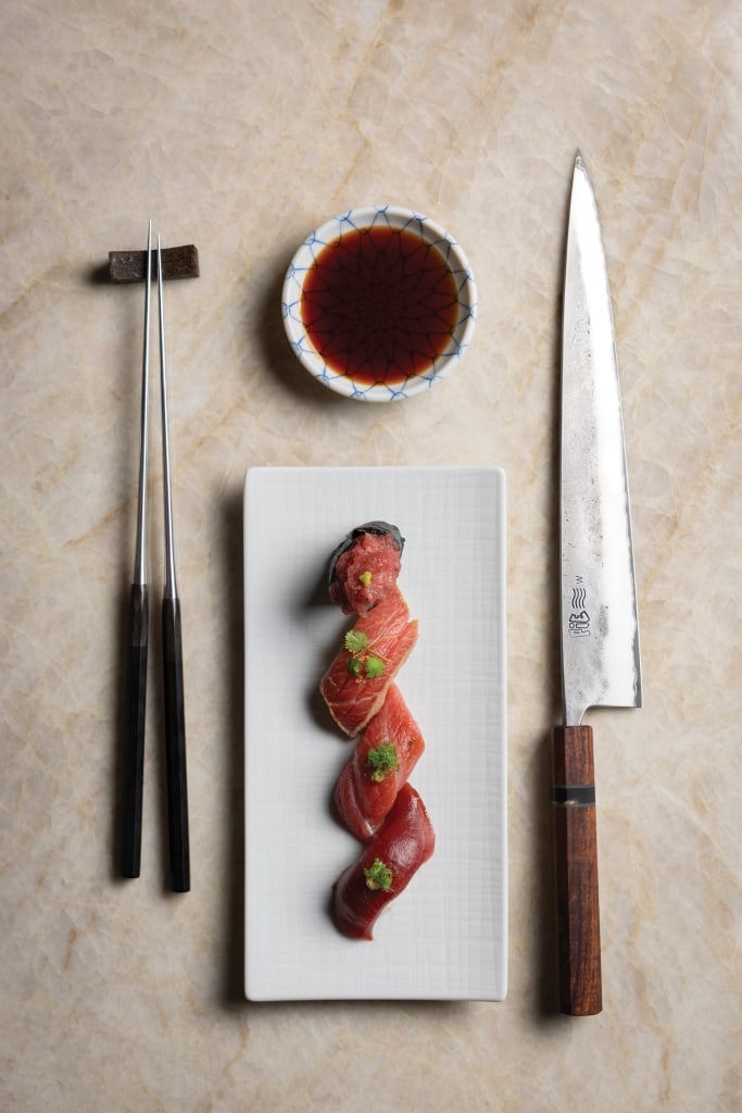 Sea Island Sushi Chef Jam Magtanong’s knife from Pie Cutlery.