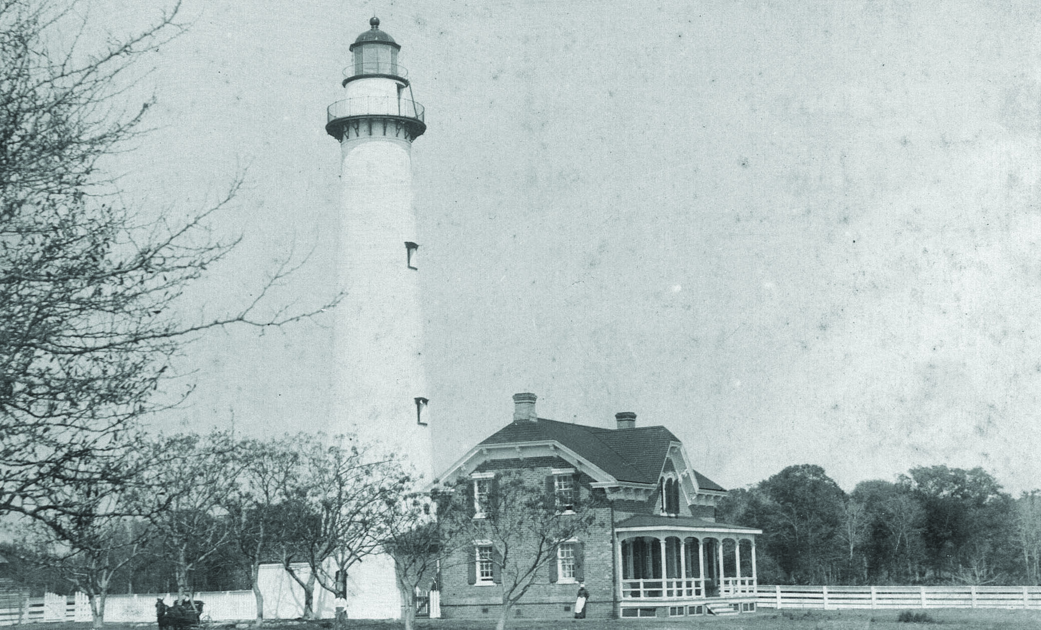 St. Simons Sound have been piloted by the comforting beam that emanates from a lighthouse guarding the waters. A segment of land was originally deeded and designated for a lighthouse in 1804. That original lighthouse, with its keeper appointed in 1810, was made largely of tabby, a mixture of oyster shells, sand, water and lime material often used along the Southern coast in that time period.