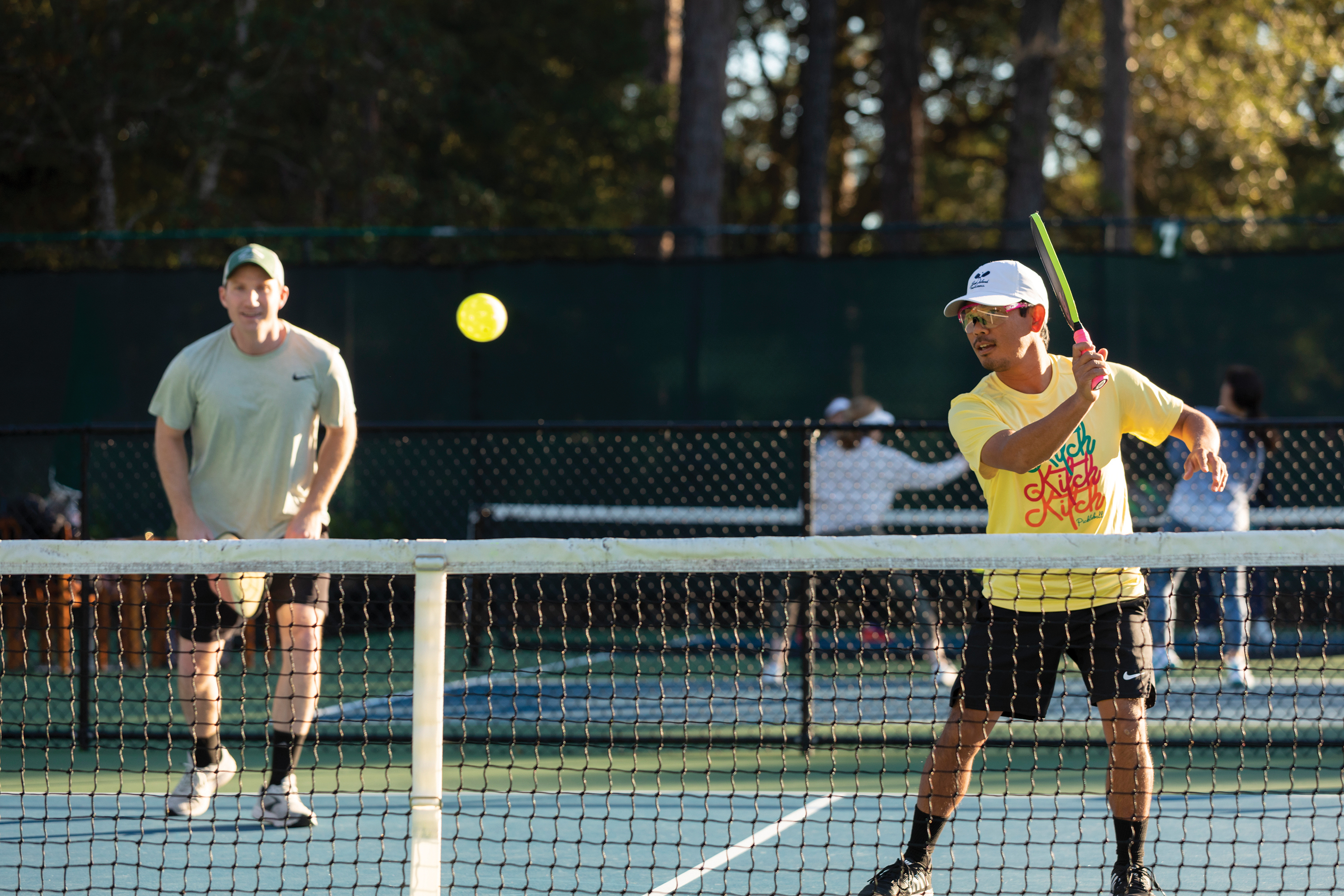 Though it might seem best to make your first attempt at pickleball with a private lesson, Fujikawa suggests gathering a foursome and learning together. “The rules are intricate, and the scoring is tricky,” he says. “Learning that part at the same time you’re learning to hit the ball will make it come together more easily.”